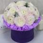 17 белых ранункулюсов в шляпной коробке в Вилючинске