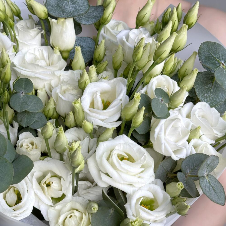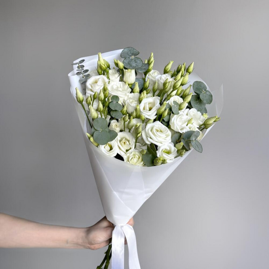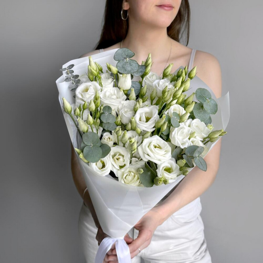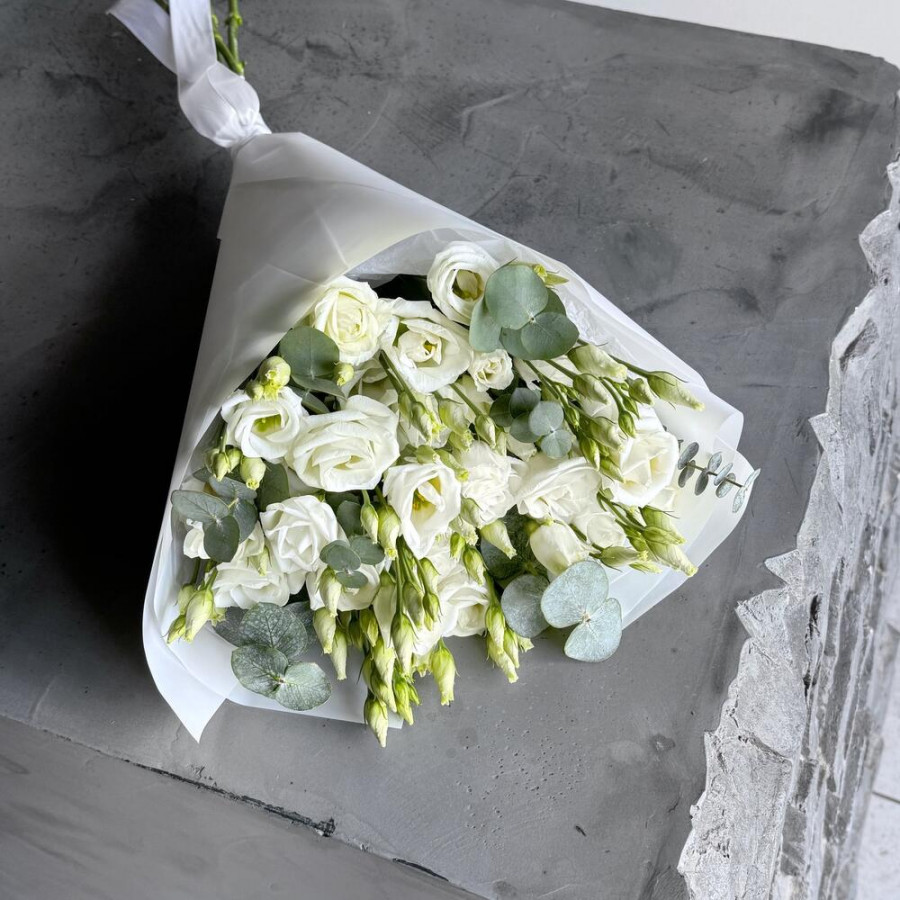 Букет из 7 белых эустом и эвкалипта в Вилючинске