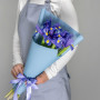 На фото букет из 7 синих ирисов. В составе: ирис 7 шт, дизайнерская упаковка 1 шт, атласная лента 1 шт, . Все цветы свежие и ароматные, букет красиво оформлен и отлично подходит для подарка. Доступна доставка цветов или самовывоз.