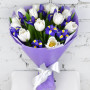 Букет из синих ирисов и белых тюльпанов в Вилючинске