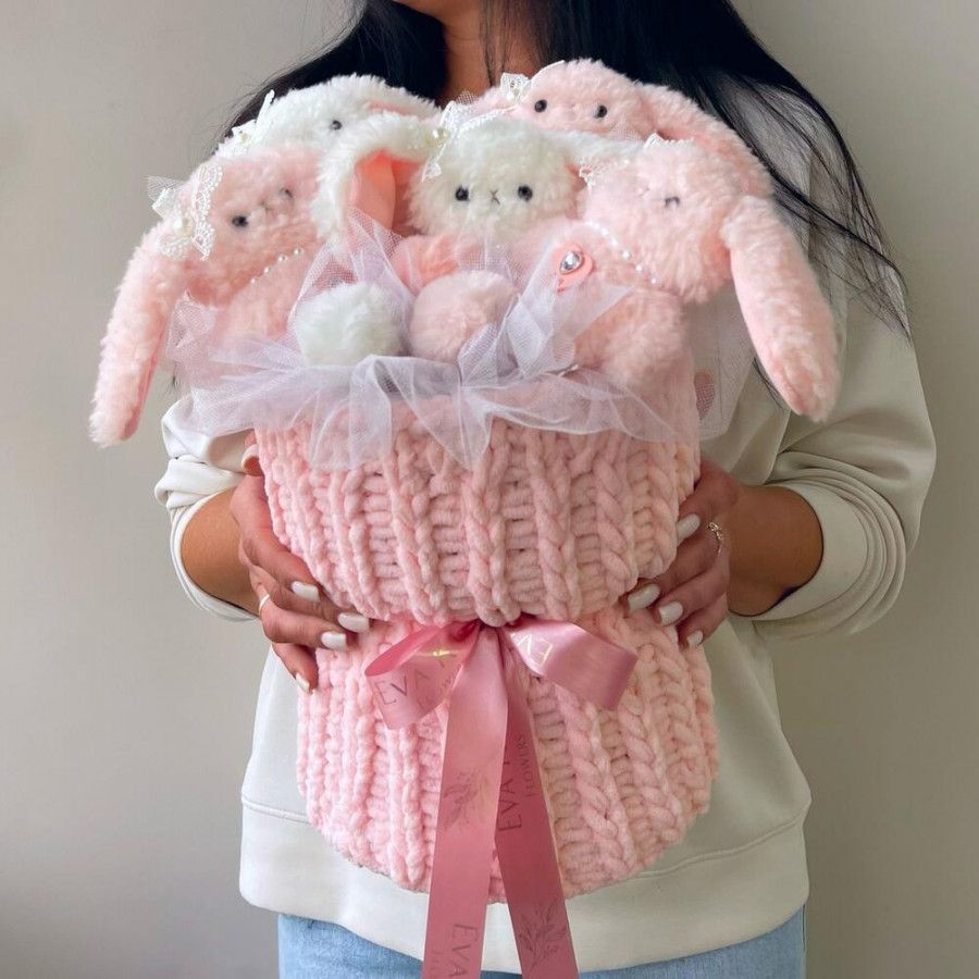 Букет из игрушек зайчат в платье