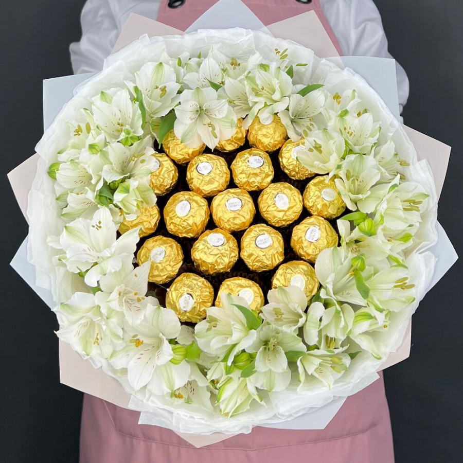 Букет из конфет Ferrero Rocher и и альстромерии в Вилючинске