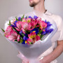 Букет из синих ирисов из розовых альстромерий в Вилючинске