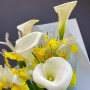 Букет из желтых ирисов и беллых калл в Вилючинске